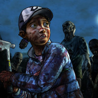 The first screenshot of Clem surrounded by the undead no doubt picks up right where the last episode left off; the second screen features Kenny, Luke, and Bonnie alongside our young heroine, at gunpoint by an unknown person.